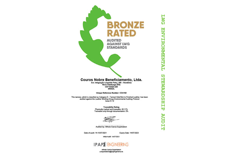 • Certificação do LWG (Leather Working Group);